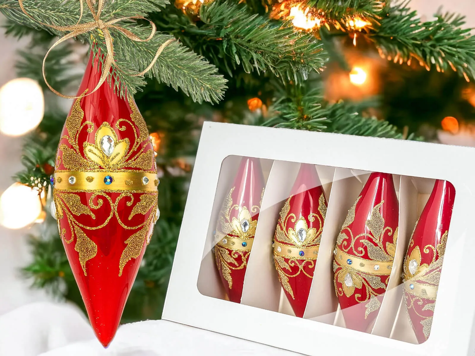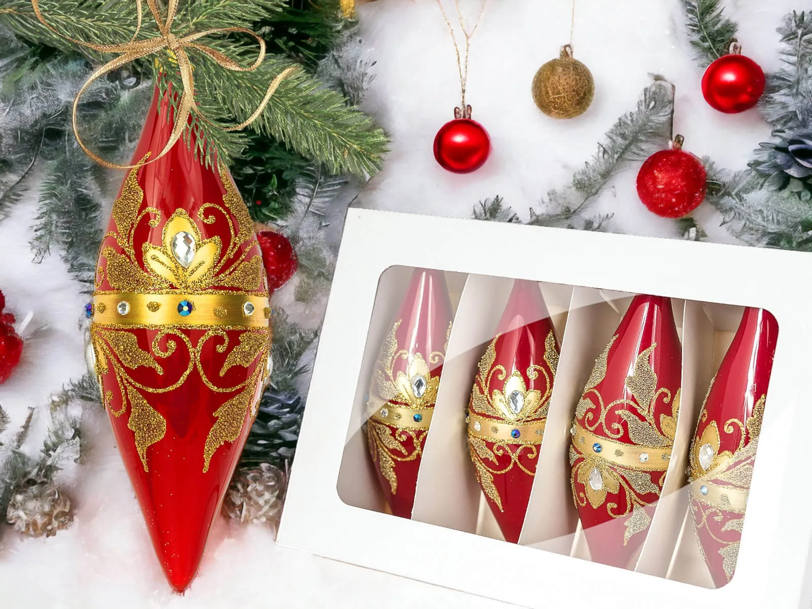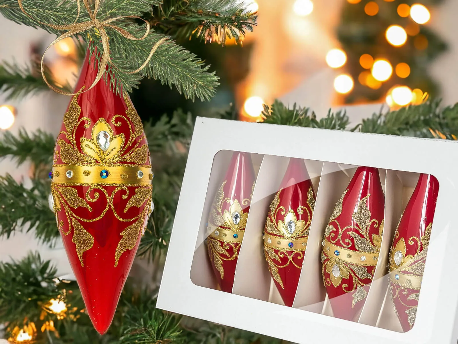 Ein Set aus eiszapfenförmigen Glaskugeln, die Ihrem Weihnachtsbaum einzigartigen Charme und Eleganz verleihen. Diese handgefertigten und bemalten Dekorationen sind nicht nur Weihnachtsschmuck, sondern auch Ausdruck der Tradition des polnischen Handwerks und der Liebe zum Detail.