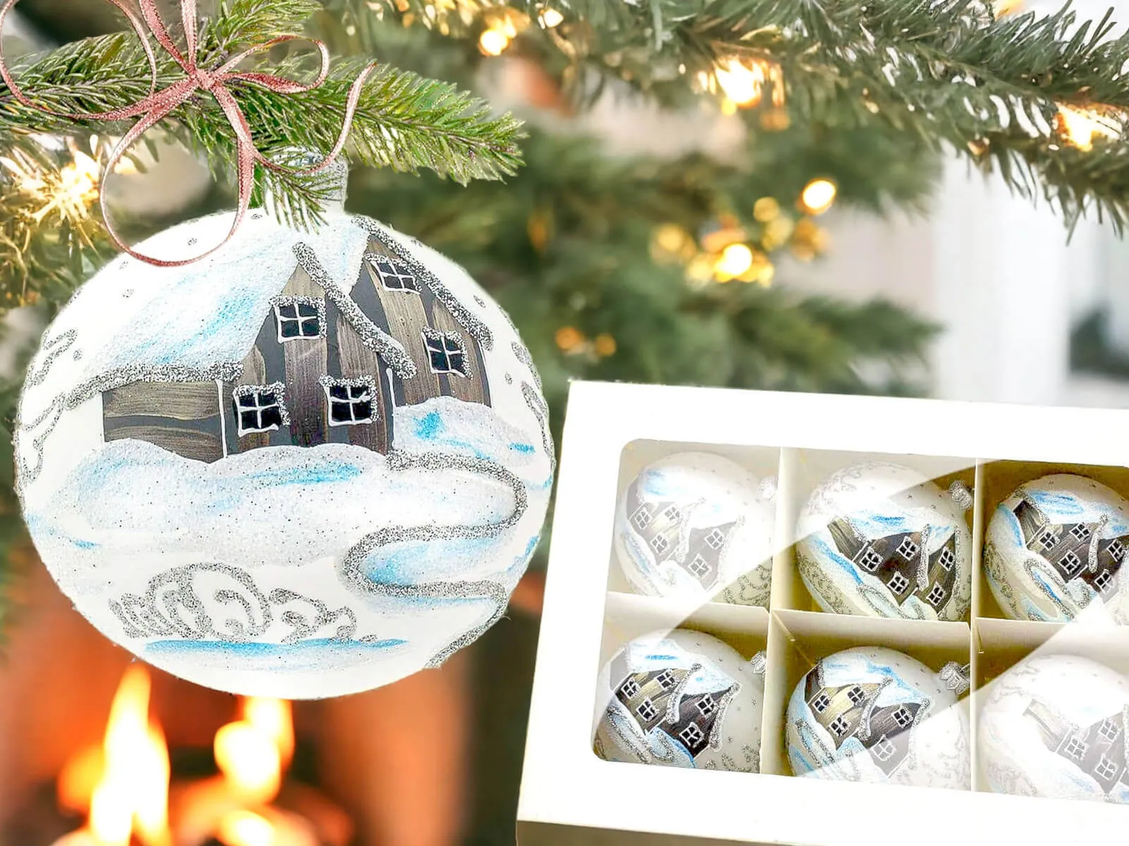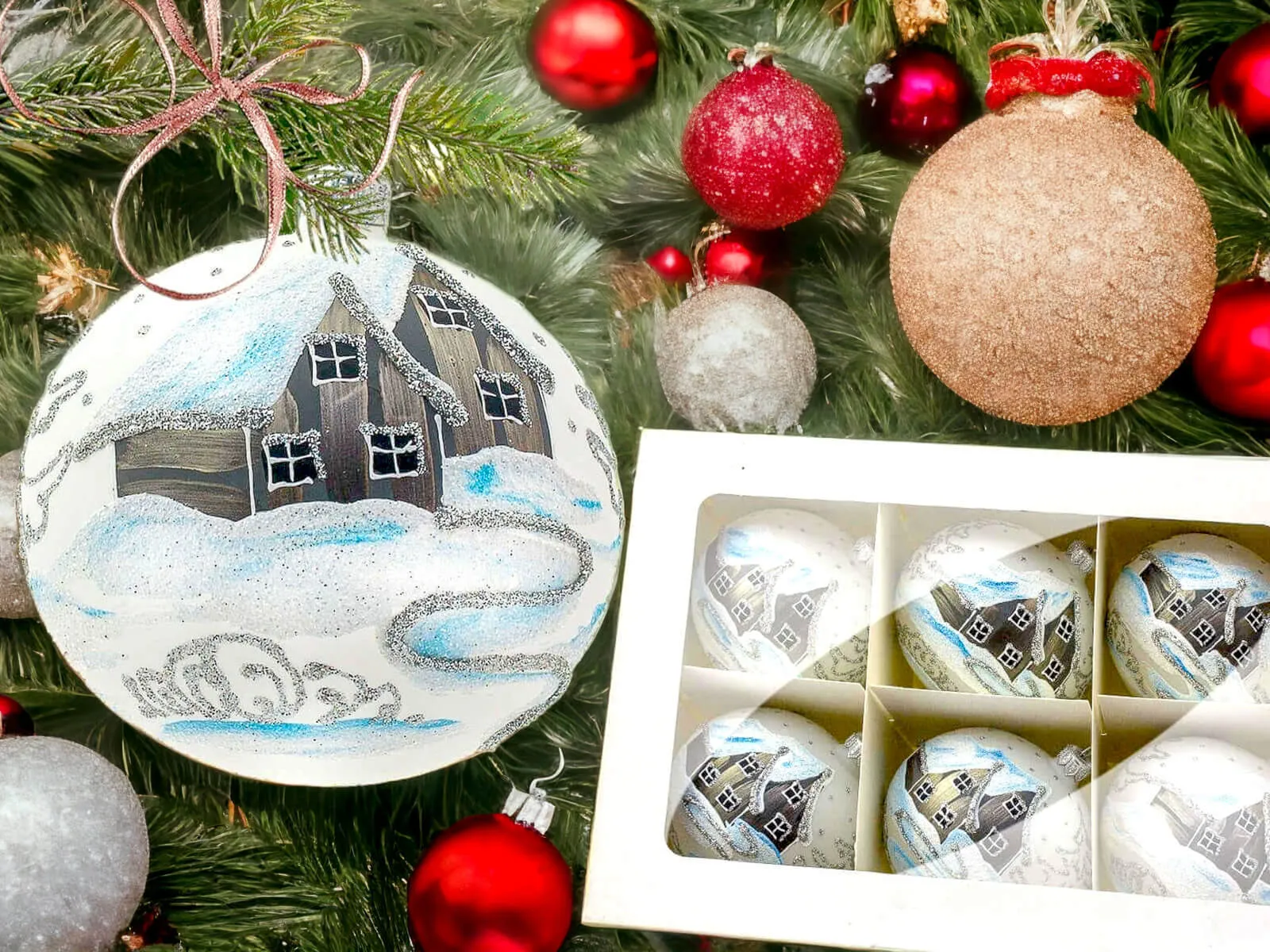 •  -  100 mm glas weihnachtskugeln  6 Stck