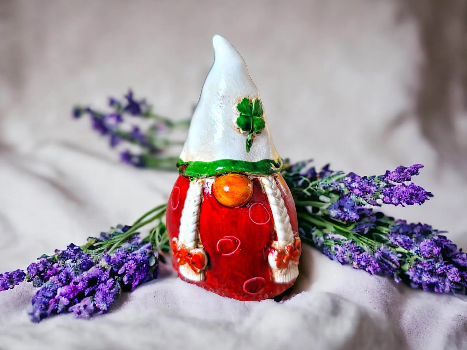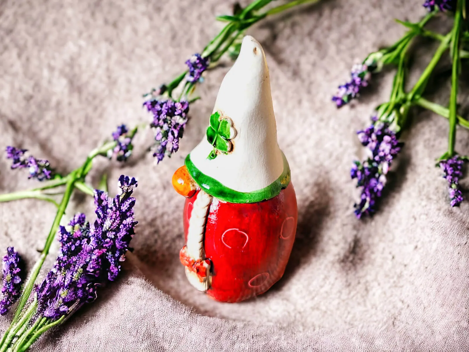 Elf Gourmet - beige rot - dekorative gipsfigur 5 x 5 cm