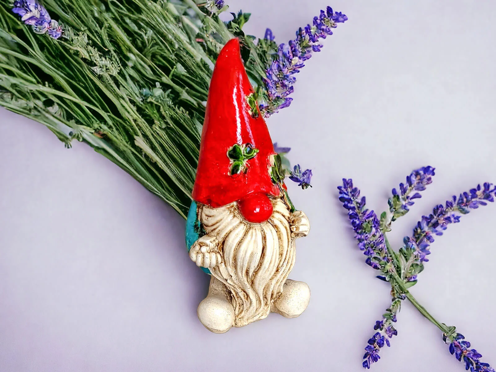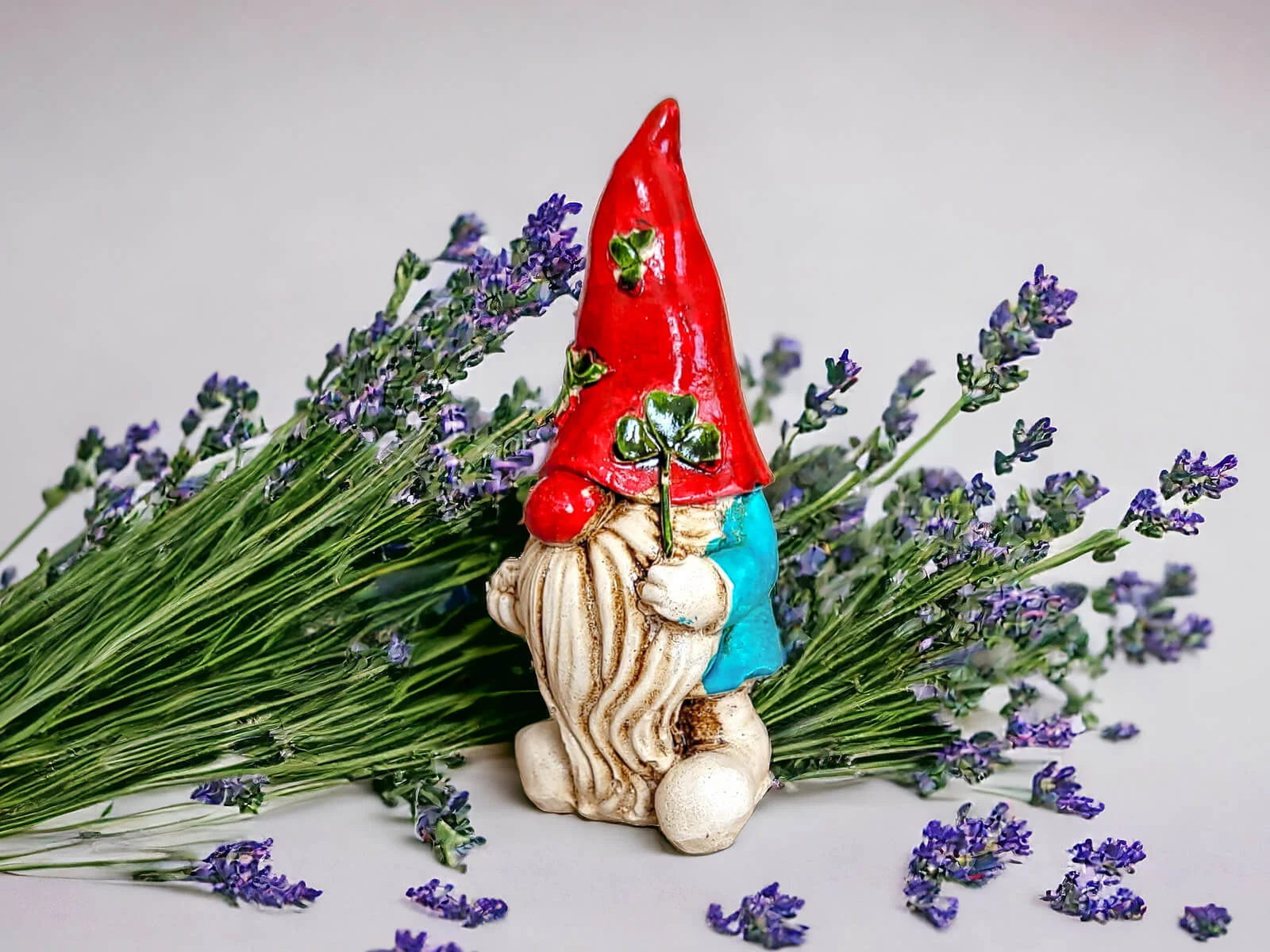 Sein übergroßer roter Hut mit langer Spitze dient nicht nur als stilvolles Accessoire, sondern auch als Platz, an dem oft Kleeblätter hängen. Diese fünfblättrigen Kleeblätter sind ein Zeichen des Glücks und aufgrund der ihnen zugeschriebenen magischen Eigenschaften gilt der Glückszwerg als Glücksbote.