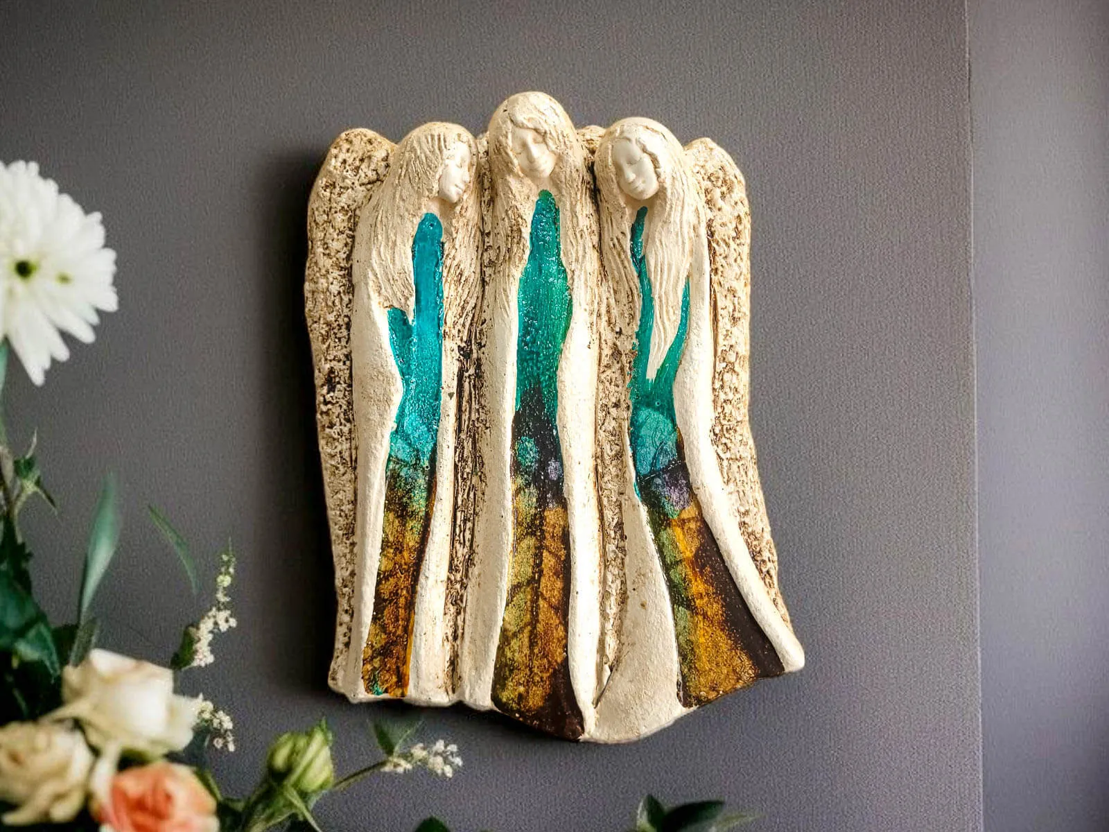 Engel Glaube Hoffnung Liebe - Art Leaf - 28 x 20 cm dekorative gipsfigur