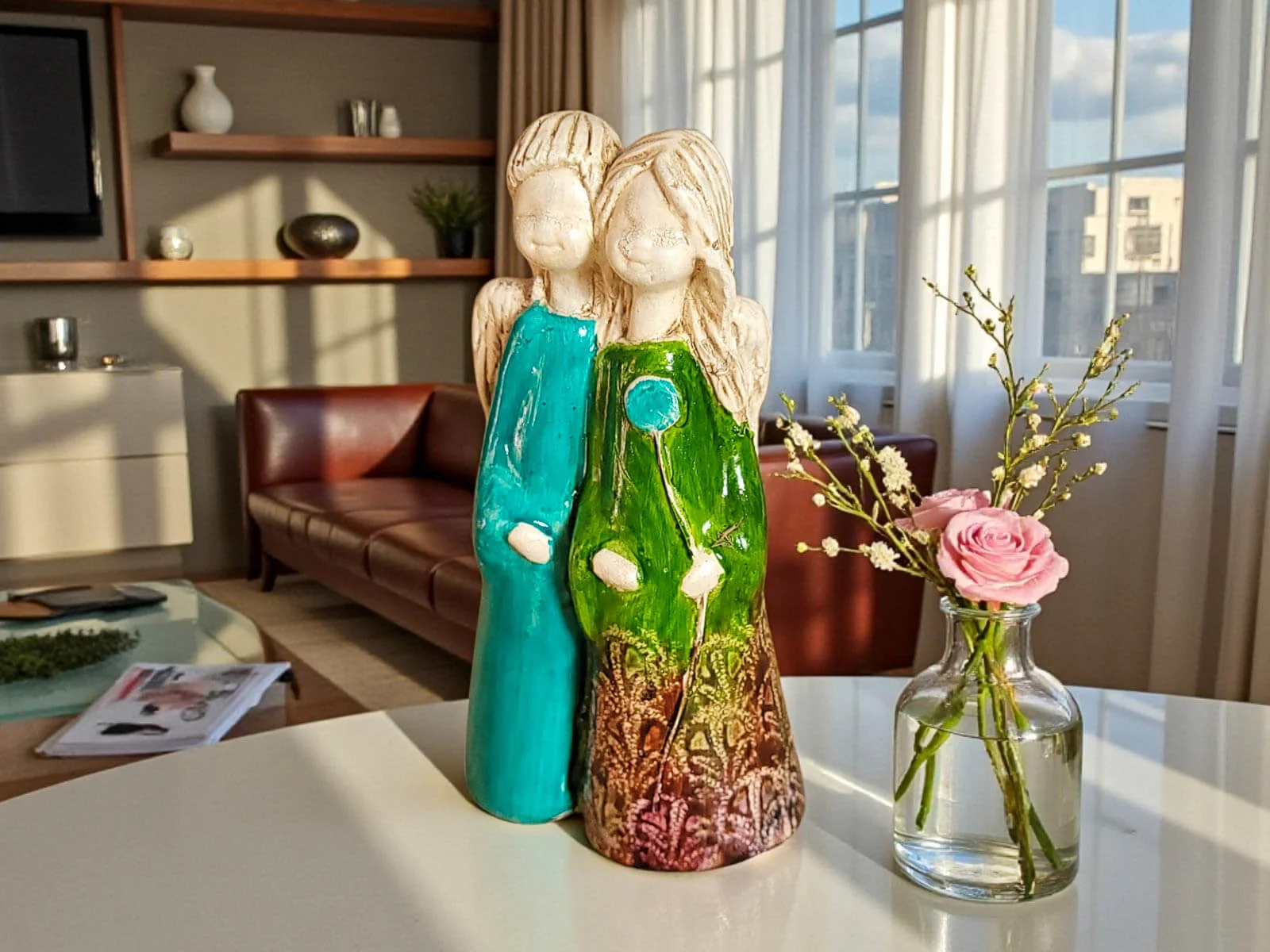 Soll der Engel verschenkt werden, können wir ihn auch elegant in transparentes Zellophan einwickeln und mit ökologischer Schnur umbinden. Dadurch sieht der Engel noch würdevoller aus und ist bereit zum Verschenken. Der Einfachheit halber können Sie auch gleich eine weiße Geschenktüte aus Papier kaufen.
