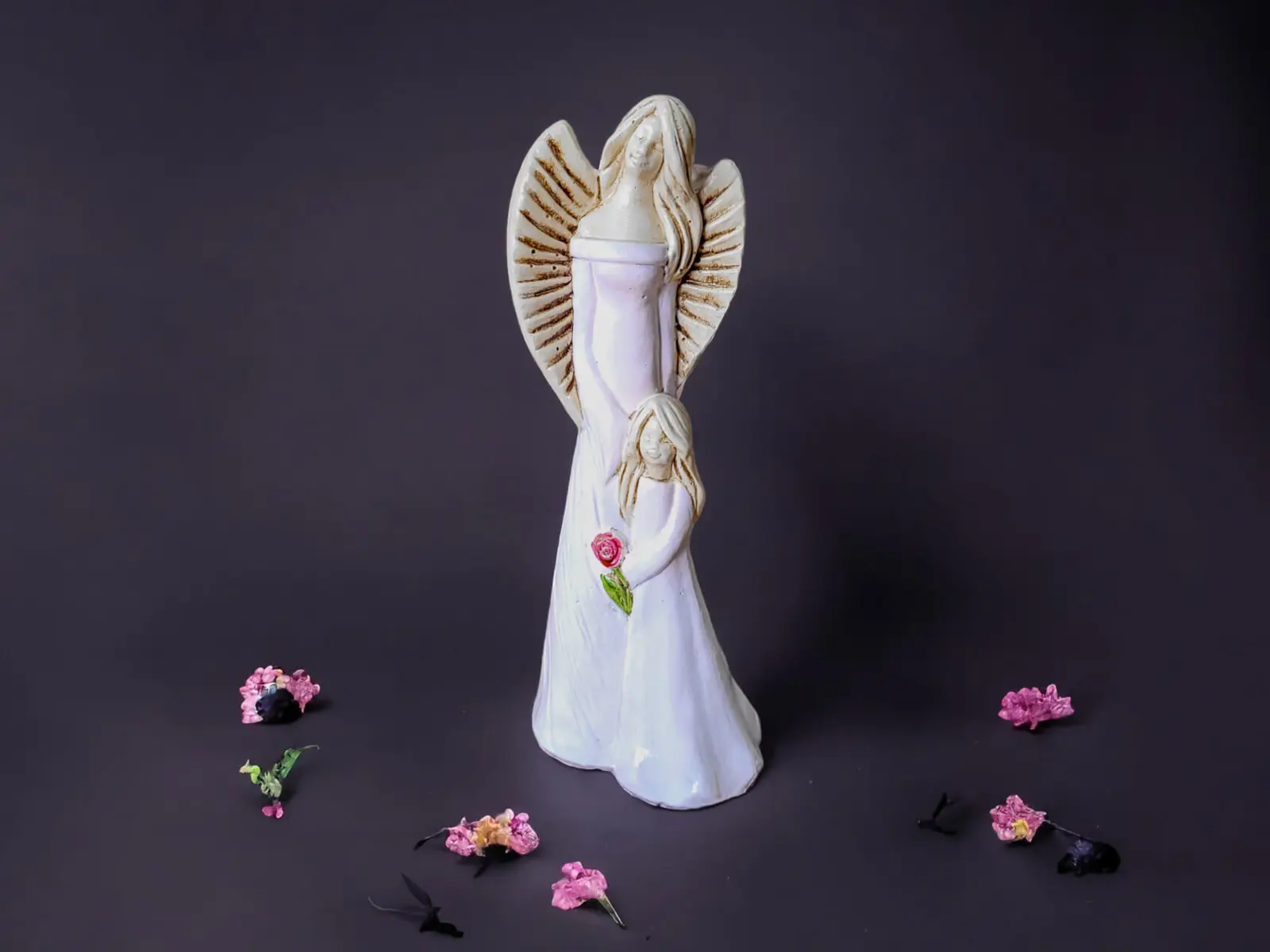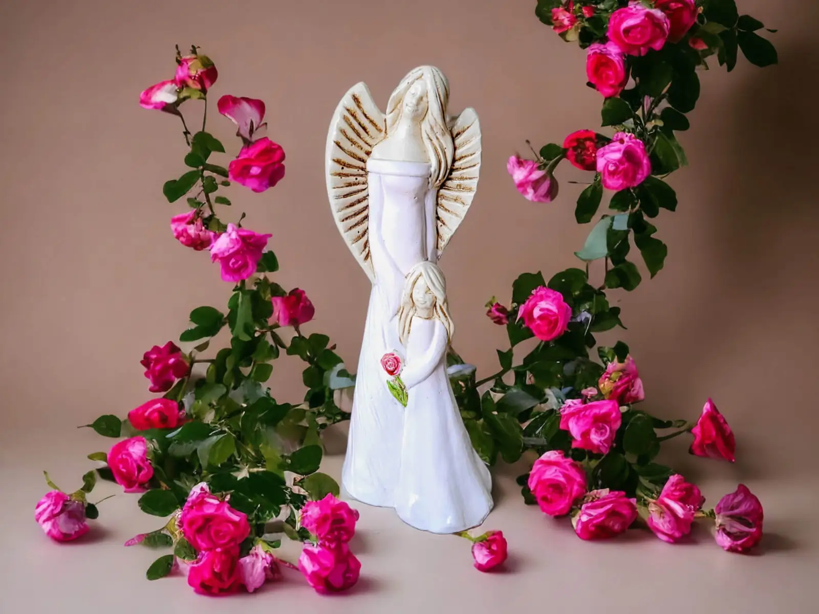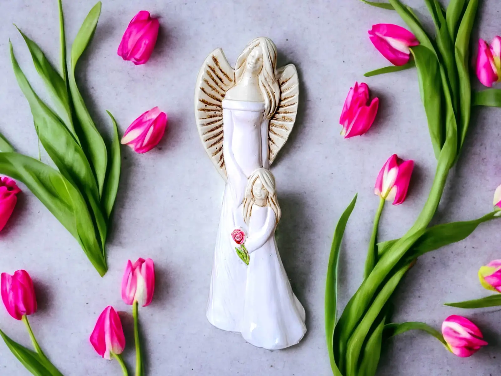 Hannah & Evelyn Angel – rosa weiss - 32 x 15 cm dekorative gipsfigur