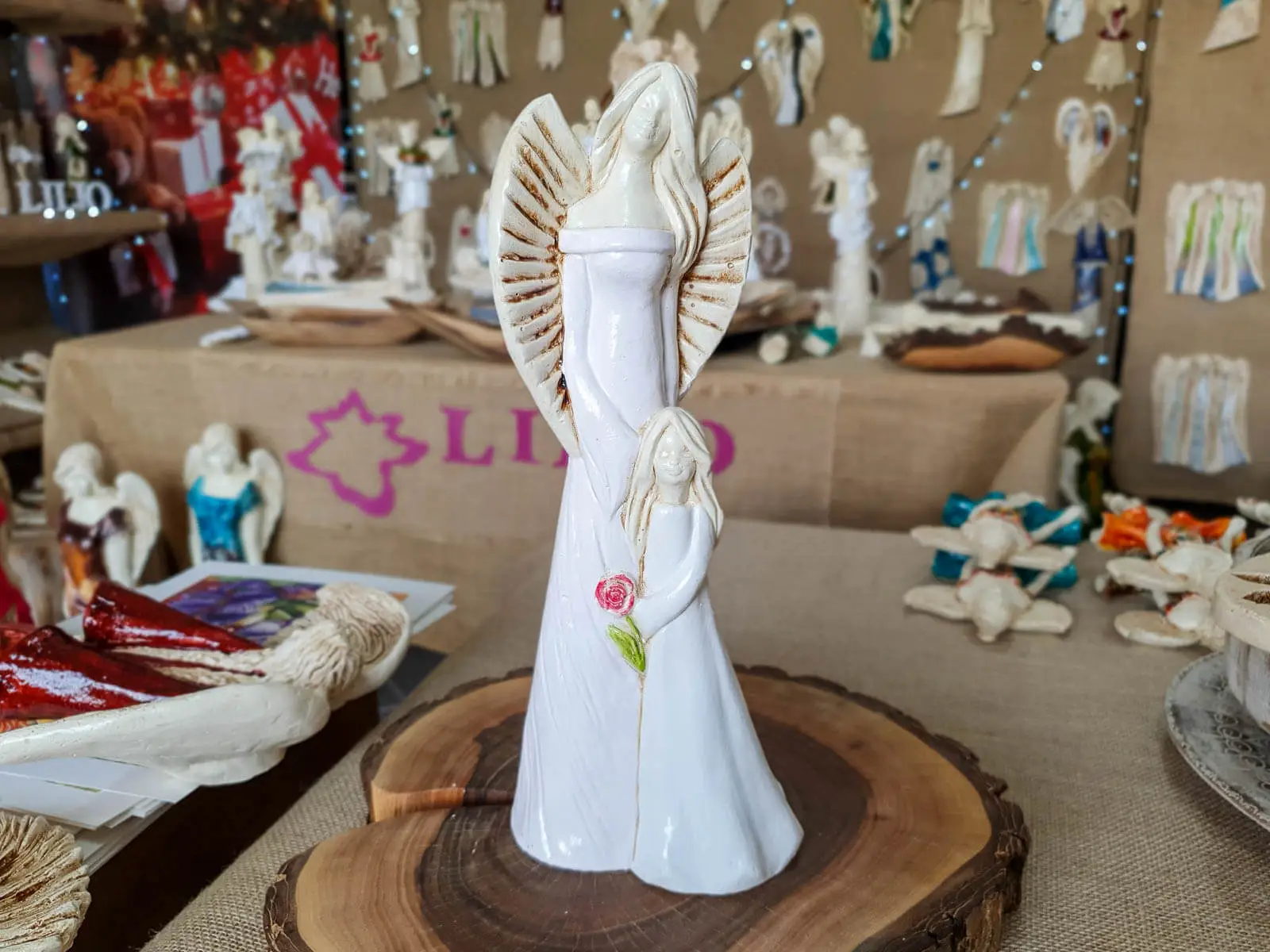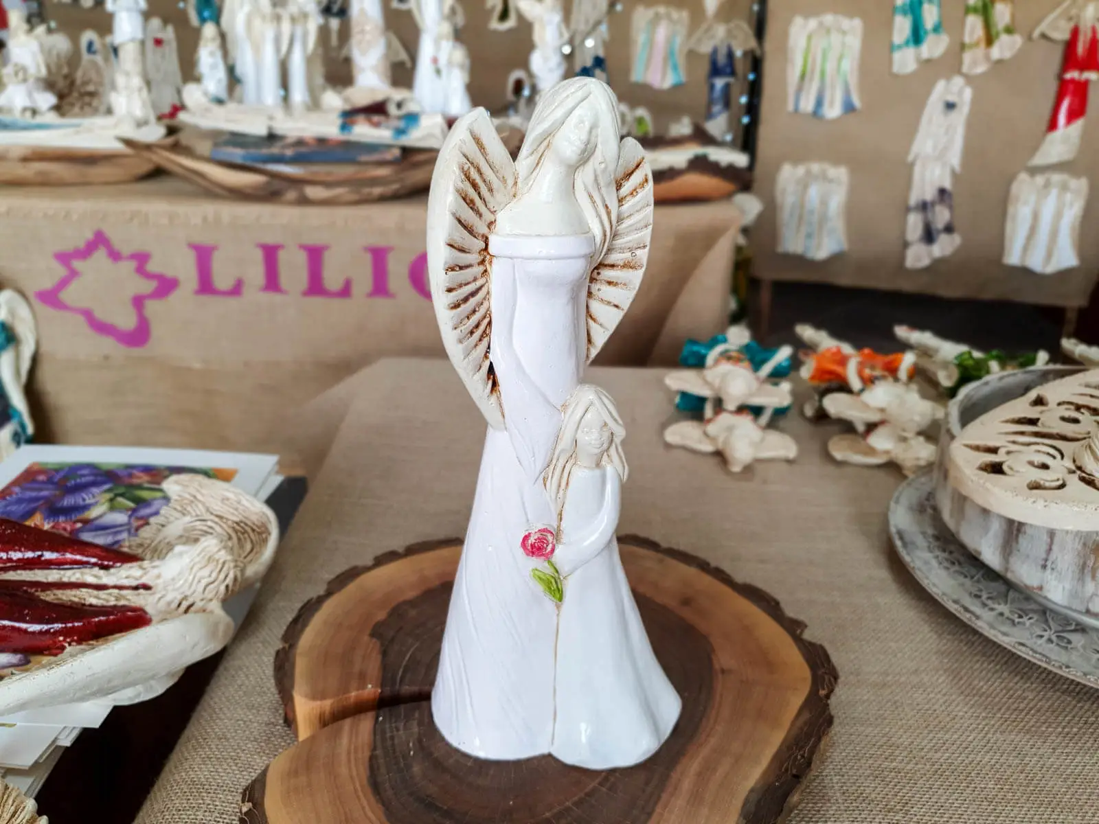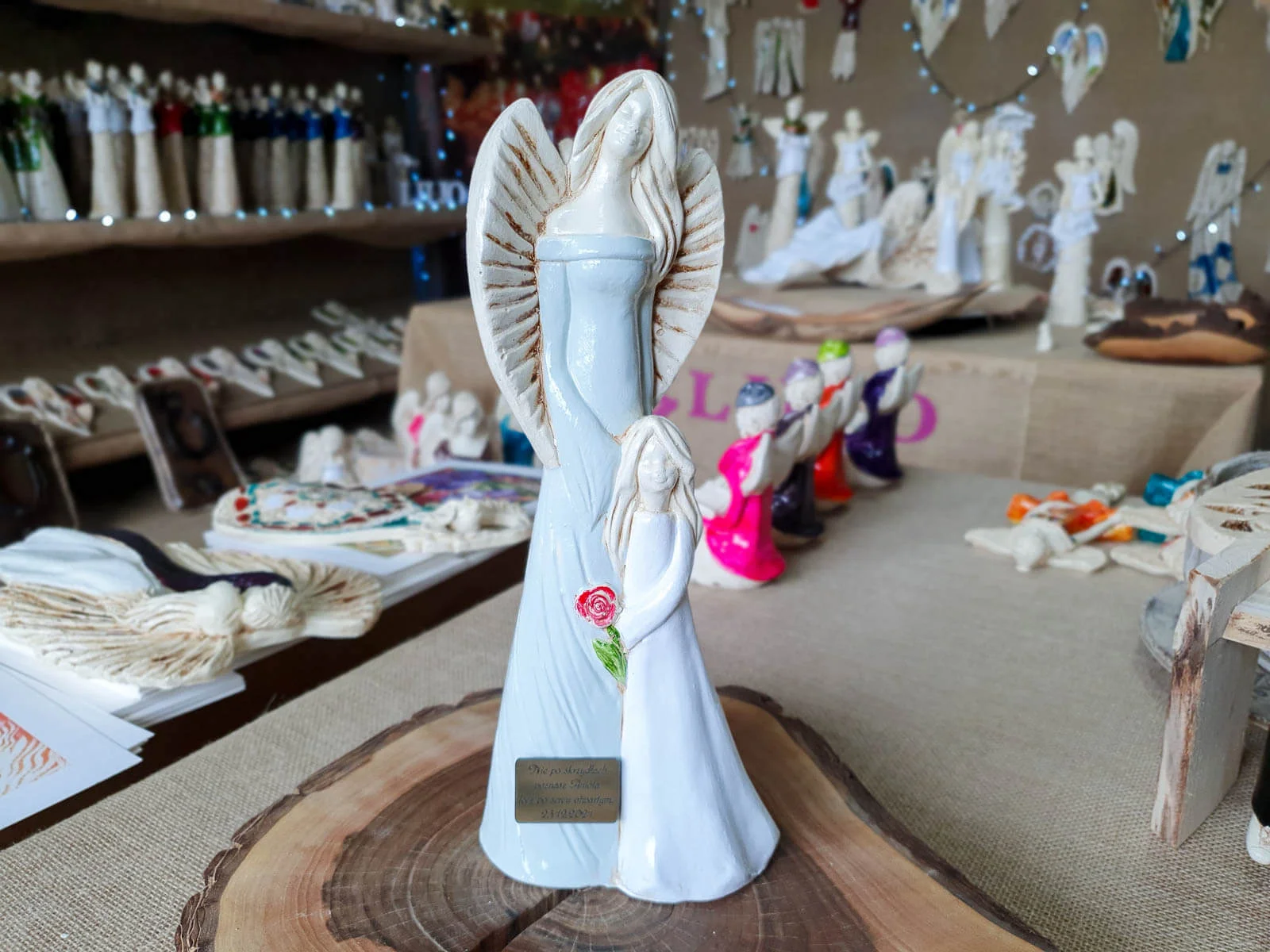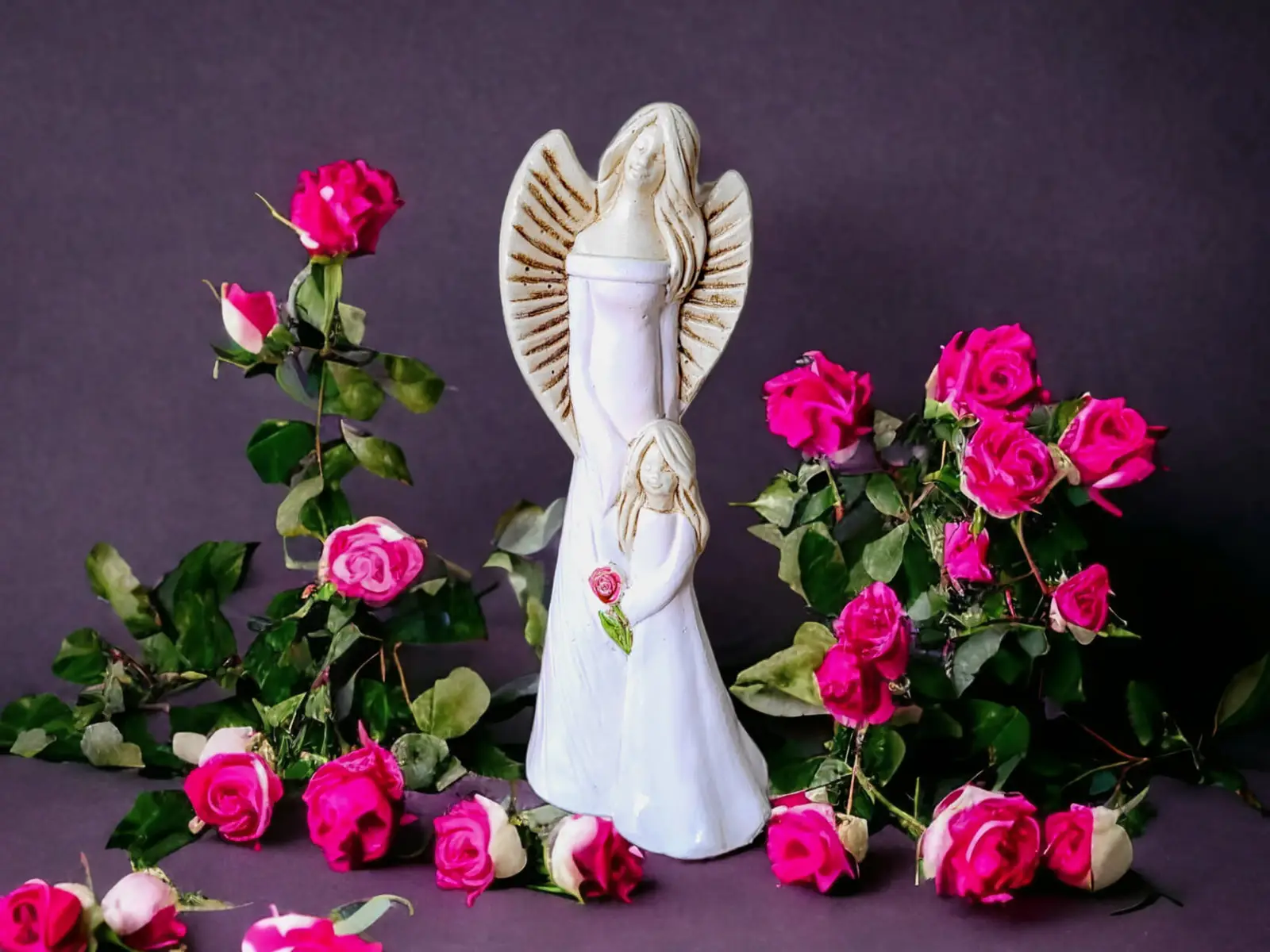 Hannah & Evelyn Angel – rosa weiss - 32 x 15 cm dekorative gipsfigur